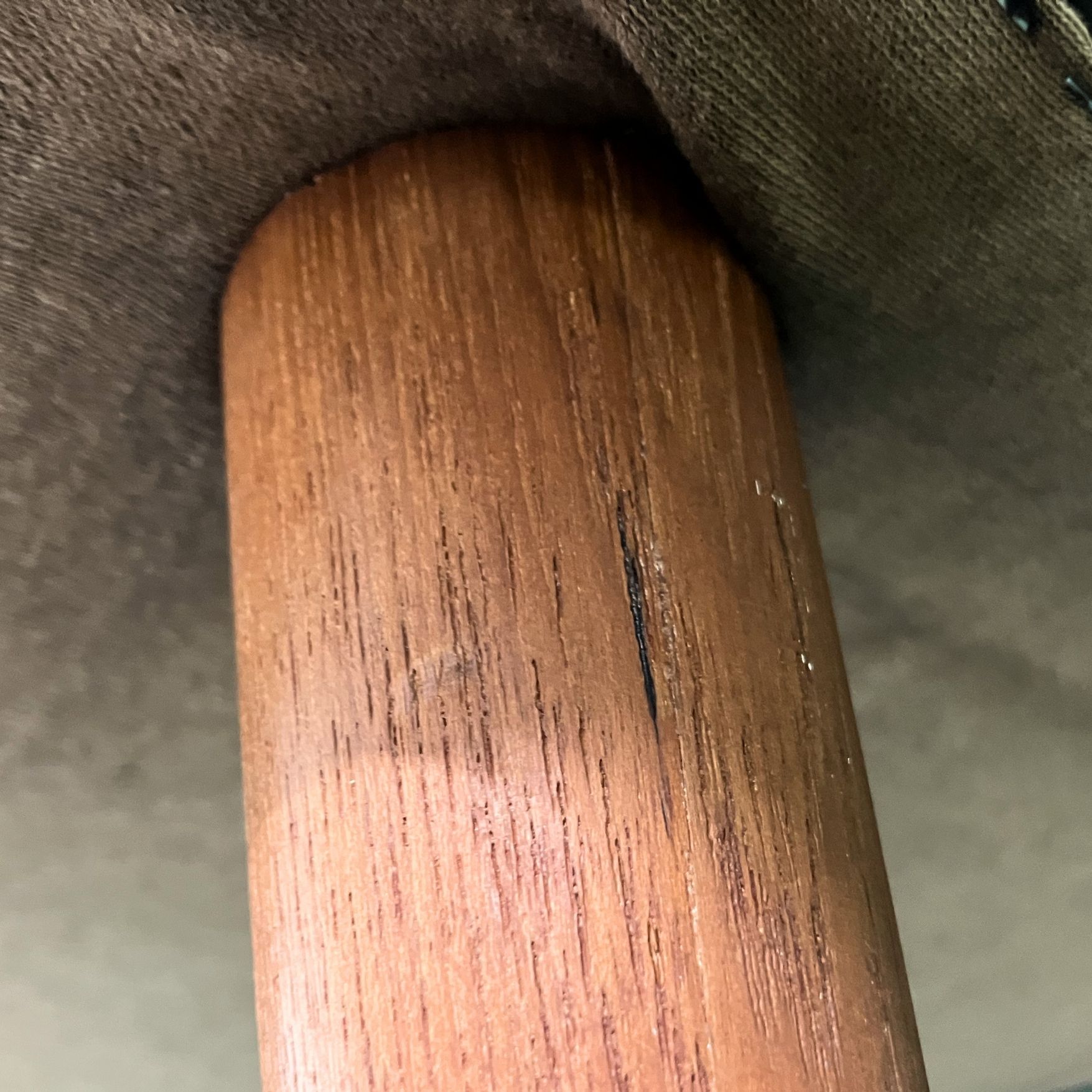 ・正面向かって右側の肘掛け下部(皮革)に劣化あり ・右前脚ぐらつき・ひび割れあり