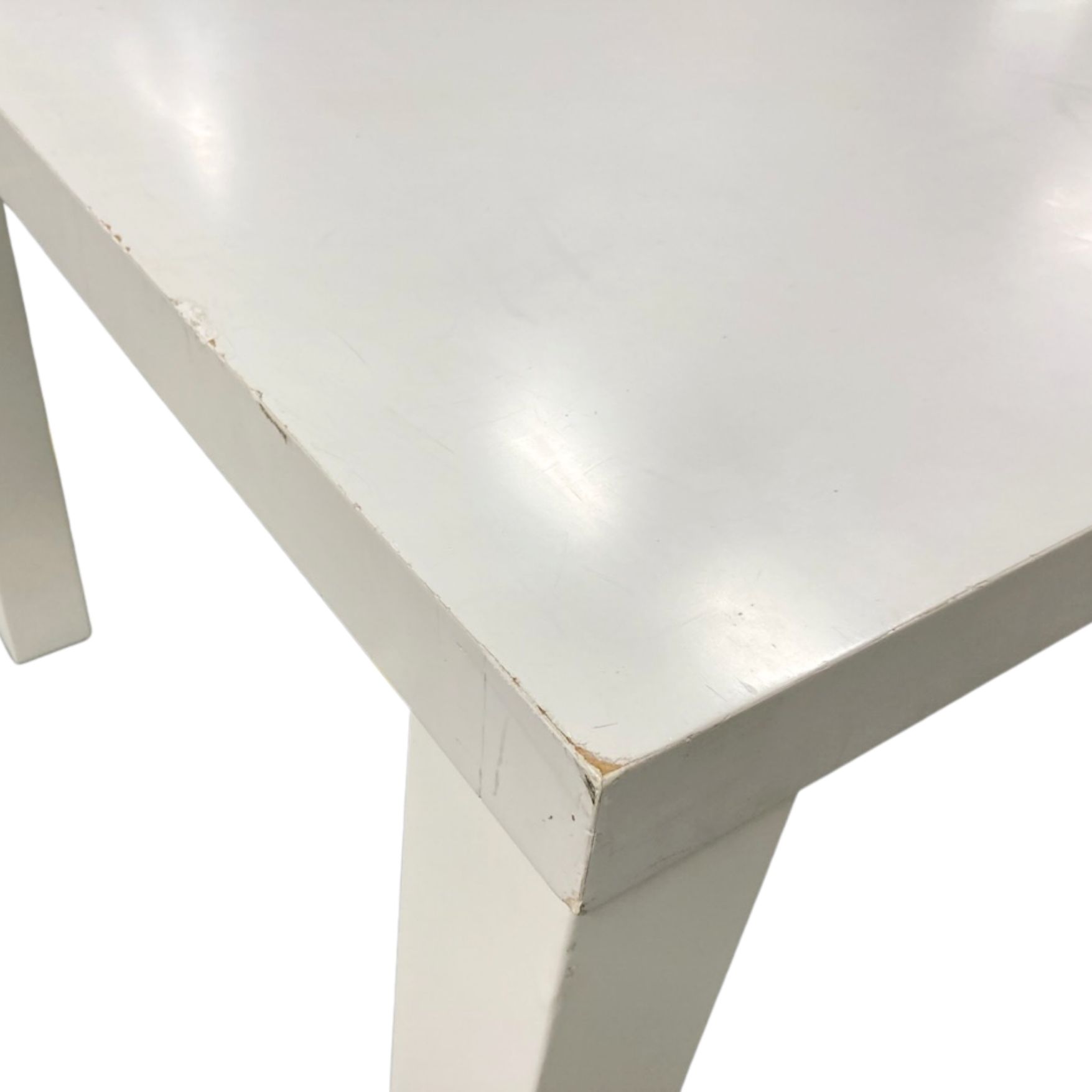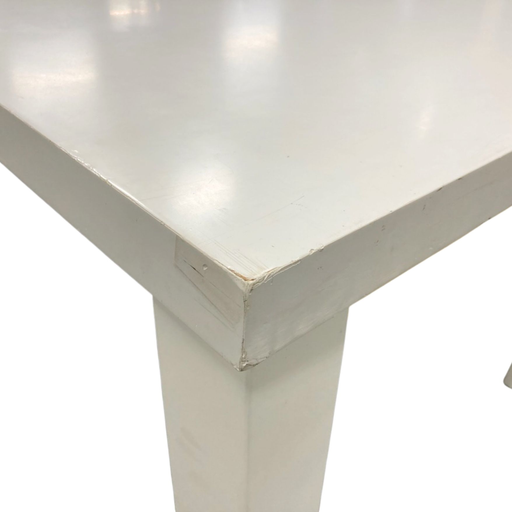 天板端に塗装削れ、凹みあり / 天板全体に細かいキズ有脚4本中1本が若干内側向きに付いています。 実用問題ありませんが間正面からのアングルのみ若干歪んで見える可能性あり